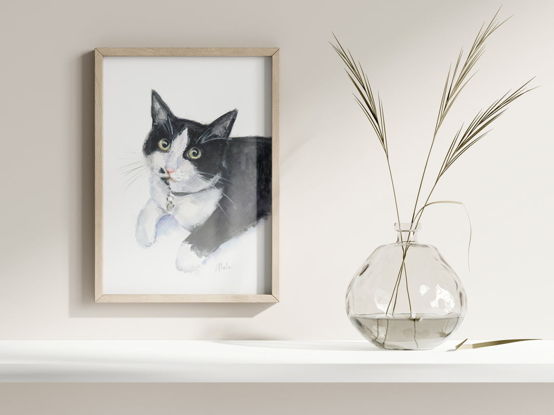 My painting style is based on Zen drawing – spontaneous, mindful, and guided by intuition. For pet portraits I paint a bit more realistically, so they feel true to the animal. Still, I let water and color flow freely, allowing each painting to become something unique and full of life.