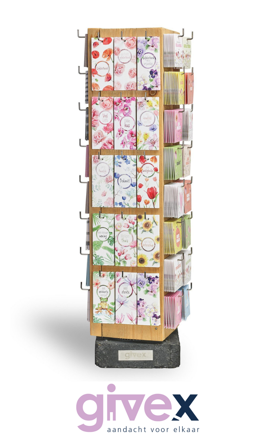 Give-X offers a selection of counter products featuring illustrations by Michelle Dujardin, specially designed for florists and gift shops. In the Netherlands, the 'Michelle’s Flowers' collection includes colorful flower cards and small gift tags.