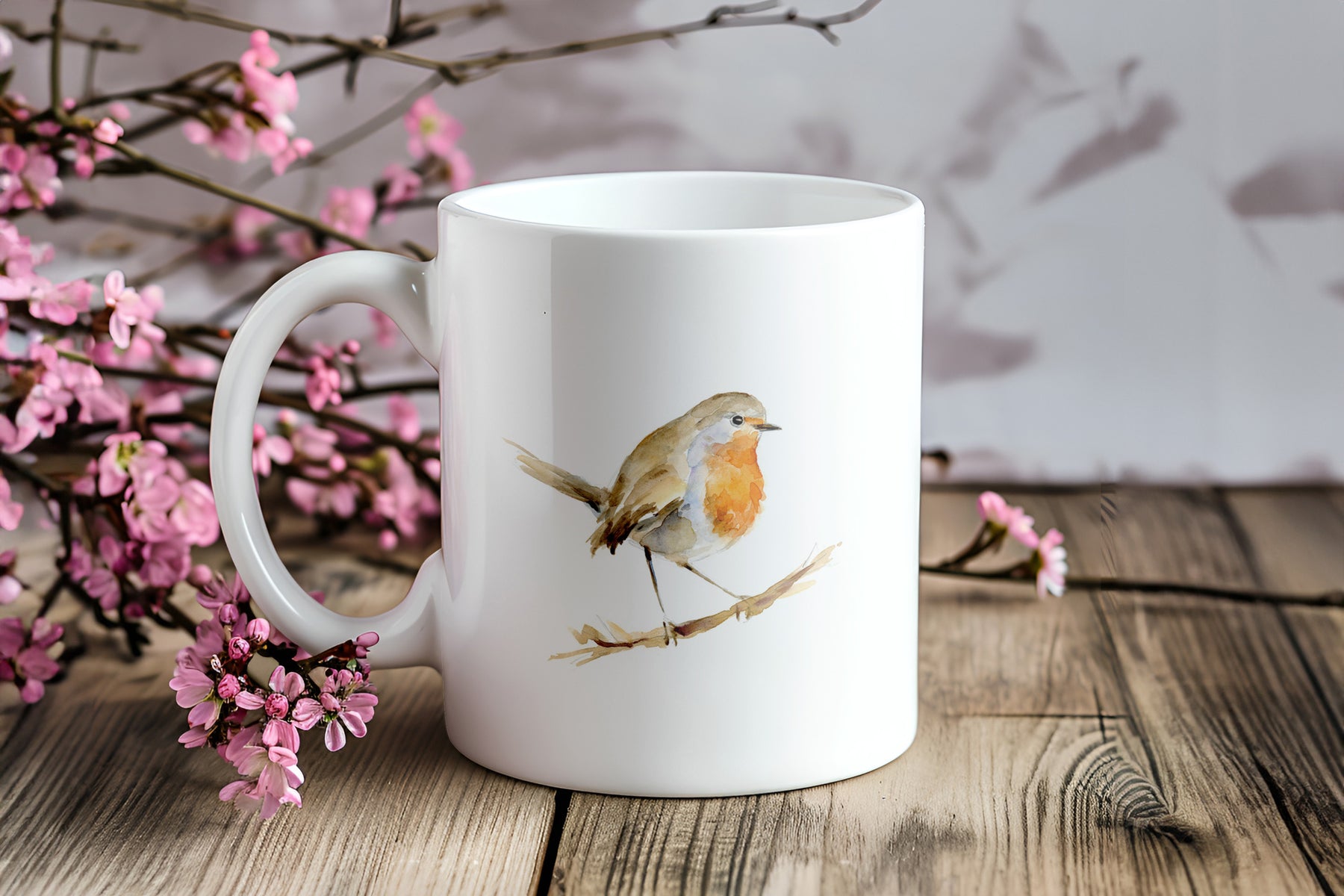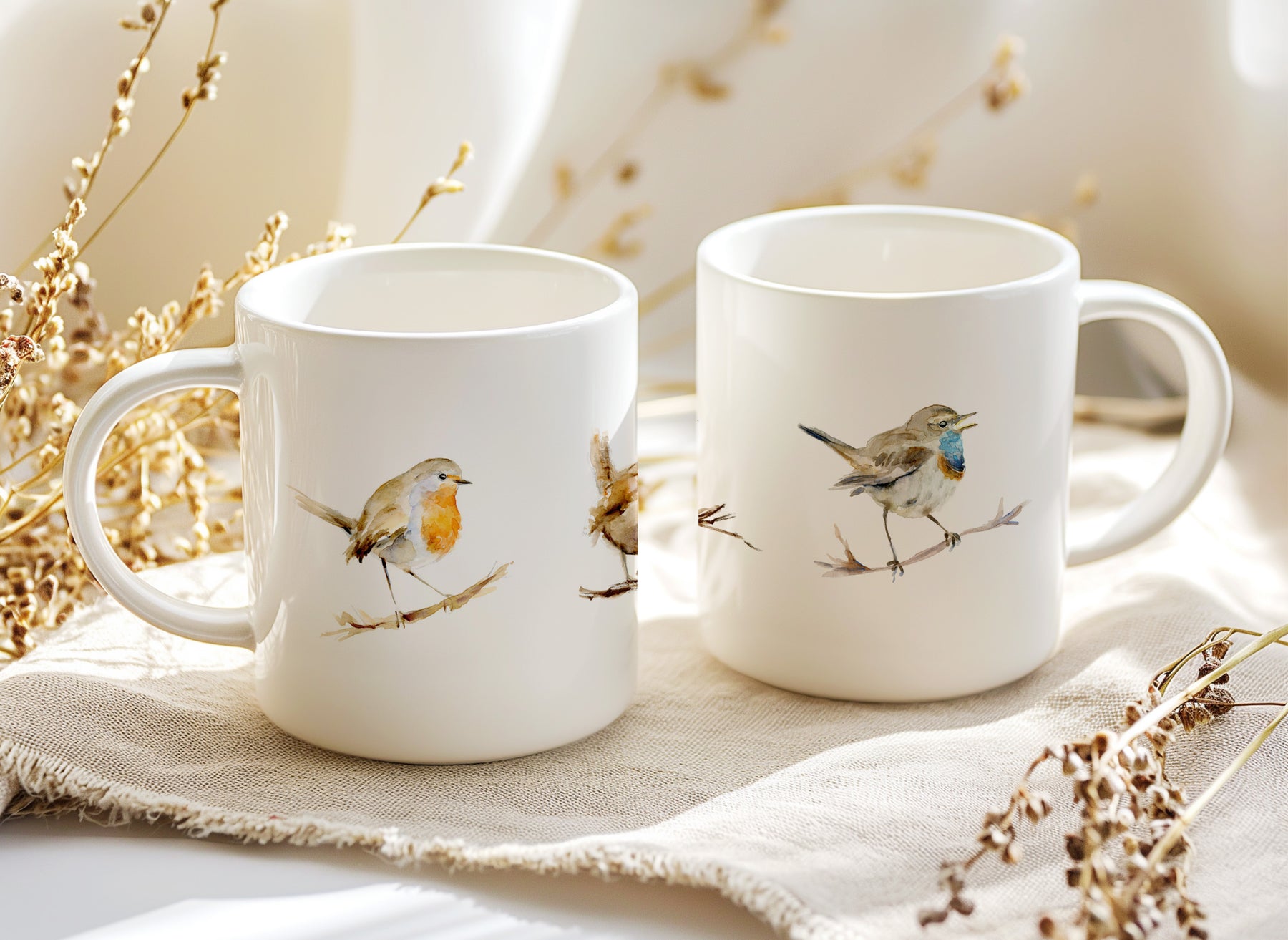 Een sfeervolle vogelmok voor natuurliefhebbers, vogelaars en iedereen die houdt van geïllustreerde kunst op alledaagse objecten.